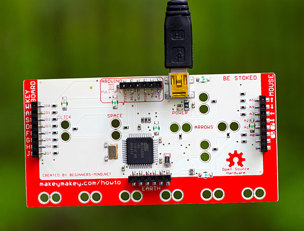 Este proyecto propone implementar un hardware compatible con el http://www.makeymakey.com/ realizando adaptaciones para utilizar componentes que se consigan localmente, pcb de simple faz, en Kicad y que se pueda armar en forma casera con transferencia térmica y cloruro.